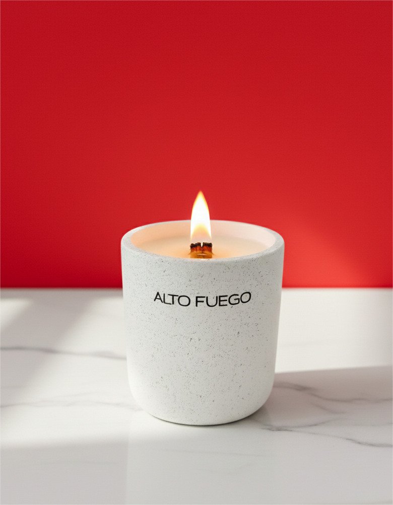 Nuestra mezcla de ceras naturales, fragancias hechas con aceites esenciales y libres de toxinas, pabilos de madera.